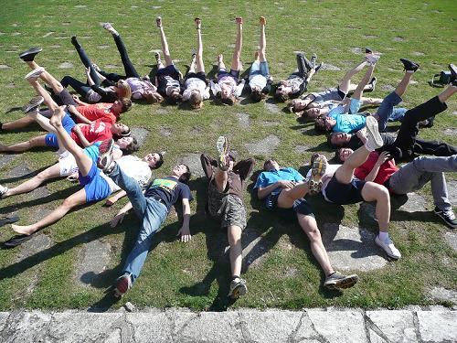 Nachdem wir uns in der Mittagspause bei einem Nickerchen entspannt hatten, ging es für die „Kampfkeulengruppe“ (KKG) und die „Weicheiergruppe“ (WEG) ans Kugelstoßen. Während sich die Kampfkeulen mit der 4-Kilokugel abmühten, ließen die Weicheier das 3-Kilobällchen fliegen. Abgeschlossen wurde das ohnehin schon kräfteraubende Training mit einem schweißtreibenden 600m-Rennen. Nach getaner Arbeit stand einem ausgiebigen Abendessen nichts mehr im Wege.