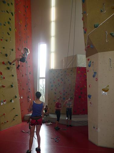Während sich die großen nach der Mittagspause im Kraftraum quälten, ging es für die Mädchen überraschenderweise zum Klettern, bei dem sie neben dem Spaß den sie hatten ihre Muskeln trainierten.