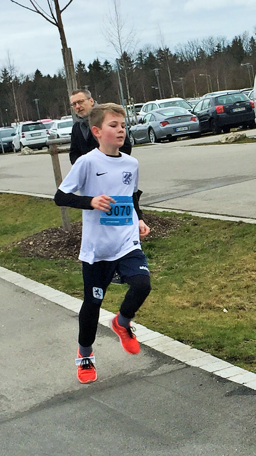 Neben vielen guten bis sehr guten Leistungen stach vor allem der 800m Lauf von Vincente Graiani (M15) hervor. Angereist mit seiner vier Woche alten, persönlichen Bestleistung von 2:12,94 min, die er in einem taktischen Rennen auf der Südbayerischen Hallenmeisterschaft erzielte, ging es in diesem Wettkampf darum, diese Zeit noch ein bisschen nach unten zu korrigieren. Höchst motiviert ging er die ersten 100m in 14 sec an und passierte die 200m-Linie noch bevor die Uhr 30 Sekunden anzeigte. Nachdem er dann die erste Hälfte der Strecke in 1:01,29 min absolvierte, wirkte es zunächst so, als ob er dem hohen Angangstempo sichtlich Tribut zollen musste. Schon durchaus angespannt laufend wurde er nach weiteren 50 Metern von dem recht unangestrengt wirkenden Konstantin Ambros (LAG Mittlere Isar) überholt, der sich aber nicht entscheidend absetzen konnte. Das Tempo weiterhin hochhaltend, ging es dann schließlich auf die letzten 100m. Wo auch immer die letzten, mobilisierten Kräfte herkamen, gelang es Vincente in der Kurve Schritt für Schritt Boden auf seinen Vordermann gut zu machen und so kam er knapp hinter ihm auf die 50m-Schlussgerade. Mit geschlossenen Augen, kämpfend bis zum bitteren Ende, trug ihn sein Wille immer weiter nach vorne und in einem Wimpernschlagfinale schaffte er es noch, sich um ein gutes Zehntel an Konstantin vorbeizuschieben und den Lauf für sich zu entscheiden. Für seine kämpferische Höchstleistung wurde er mit einer 2:08,81 min belohnt. Einfach gigantisch!