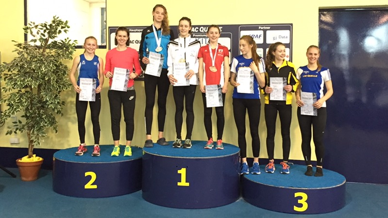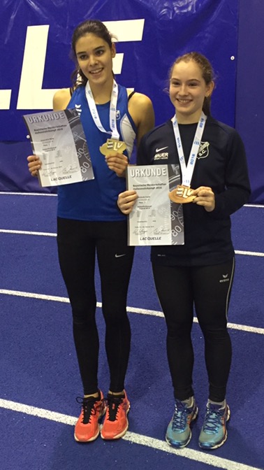 Michelle Frank (W14) ließ es nochmal richtig krachen. So sprintete sie im 60m-Finale in einer sehr starken Zeit von 8,15s an die Spitze der Bayerischen Bestenliste. Daneben sicherte sie sich im Weitsprung der W15 mit einer neuen Bestleitsung von 5,09m die Silbermedaille. Trotz eines kleinen Stolperers im Hürdenlauf, konnte sie auch hier die gesamte Konkurrenz hinter sich lassen. Im Kugelstoßen erzielte sie mit 8,12m eine tolle neue Bestleistung. Katharina Grimm (U20) zeigte erneut ihre Sprintqualitäten und belegte Platz 2 im 60m-Sprint (8,08s), wobei sie sich nur der Italienerin Maria Theresa Schwingshackl (8,03s) geschlagen geben musste. Die 200m ging sie diesmal sehr viel schneller an als gewohnt, konnte dieses Tempo aber leider nicht komplett durchhalten. Dennoch belegte sie mit guten 26,60s den ersten Platz. Alexandra Maier (W15) absolvierte nahezu pausenlos eine Disziplin nach der anderen. Im Hochsprung ließ sie die 1,47m aus, um am 60m Hürdenlauf teilnehmen zu können. In einer starken neuen Bestzeit von 9,46s kam sie auf Platz 2 und nur Denise Jaeschke (9,42s) von der LG Stadtwerke München war an diesem Tag minimal schneller. Die 1,50m im Hochsprung waren für Alexandra dann leider nicht mehr drin. Weiter gings zum Kugelstoßen, wo sie direkt in den Wettkampf einstieg. Mit einer Leistung von 10,85m kam sie ihrer Bestleistung nicht nur sehr nahe, sondern belegte auch noch den dritten Platz. Vanessa Neubauer (U18) begann ihren Wettkampftag mit einer Hürdenbestzeit von 9,68. Der Hochsprung verlief zwar nicht ganz so optimal wie geplant, jedoch reichte es für den Bronzerang.