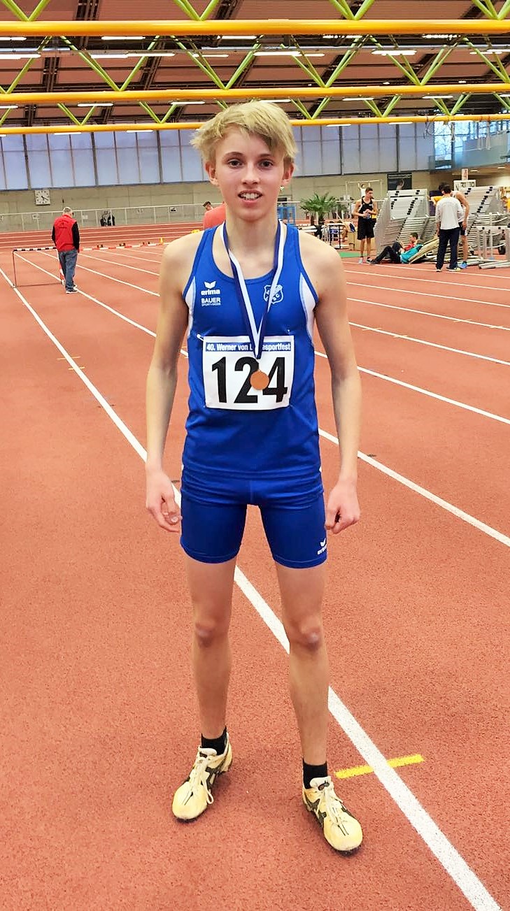 Erfolgreichster Kirchheimer Athlet der U14 war dabei einmal mehr Florian Ertl. In der Altersklasse M13 konnte er sich im Kugelstoßen in einem starken Teilnehmerfeld mit einer persönlichen Bestleistung von 10,79m den Bronzeplatz sichern und musste sich darüber hinaus mit seiner neuen Weitsprungbestmarke von 4,62m nur Christian Wohlschläger von der LG Oberland geschlagen geben. Seine hervorragenden Mehrkampfqualitäten bestätigte er durch weitere persönliche Bestleistungen über die 60m (8,86 sec) und im Vorlauf und Finale über die 60m Hürden, bei dem er sich mit 10,55 sec den 5. Platz, einen Platz hinter seinem sprintschnellen Vereinskollegen Patrick Ruzek (10,53 sec) sicherte, der darüber hinaus mit 8,63 sec Fünfter im 60m-Finale wurde. Vervollständigt wurde der Hürdenfinallauf aus kirchheimer Sicht durch Paul Hänseler, der in 11,35 sec den 8. Platz belegte.