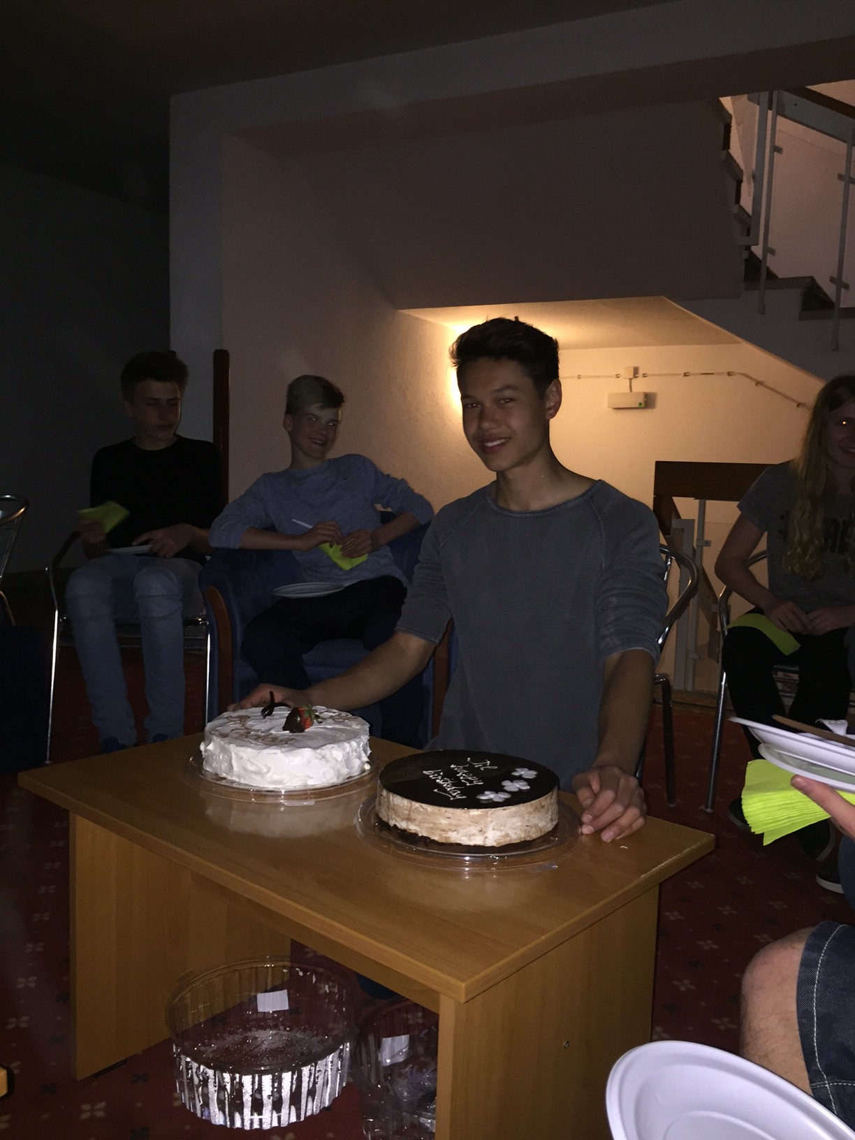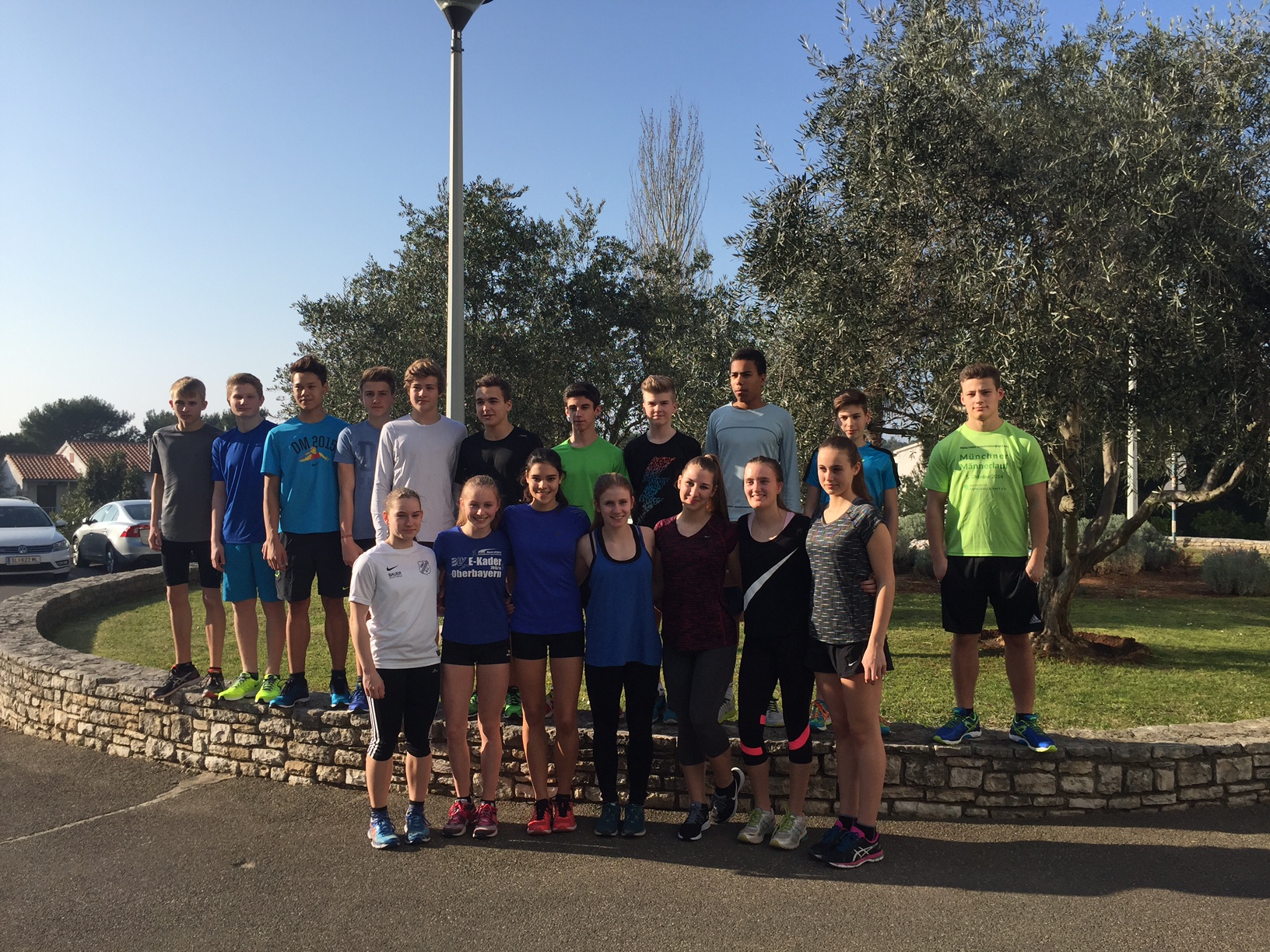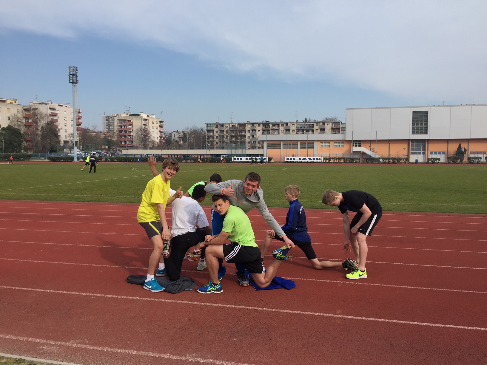Heute gemerkt, dass die Franzosen keine Franzosen sind, sondern Belgier. Vincent fand seinen Weg ins Luxushotel durch eine Art Lebensmittelunverträglichkeit. Das hinderte uns aber nicht daran fleißig weiter zu essen und die Jagd auf die Schokocroissants nahm ihren Lauf. Diesmal erfolgreich! Vormittags versuchten wir uns wieder in Weitsprung und Speer. Während wir Speer geworfen haben, bewunderten wir nebenbei einen kroatischen Hochspringer, dessen Bestleistung bei 2,25m liegt. (O-Ton Jessi : „Alter, der springt ja ein Meter höher als ich!“). Nach dem Mittagessen fanden wir, wie die Tage zuvor auch, unseren Weg zum Sportplatz zurück. Es folgten bei angenehmen Temperaturen Hürdenläufe und wir zeigten unser Können beim Kugelstoßen. Das Abendessen war heute für einige ohne Fleisch (Karfreitag), wer es nicht schon in der Früh vergessen hatte. Danach feierten wir alle zusammen in großer Runde Jil’s Geburtstag mit zwei sehr leckeren Torten nach, die Tobi, Laura, Kathi und Jil zuvor in der einer kleinen einheimischen Konditorei in der hintersten Gasse der Stadt abgeholt hatten. Es folgten ein paar Gemeinschaftsspiele, wobei sich die Mehrheit der Jungs lieber mit ihren Handys abgab und wie (fast) immer fleißig zockte. Diesmal hieß es um 23 Uhr ab auf die Zimmer und Kraft tanken für die letzte Trainingseinheit sowie die Abreise am folgenden Tag.