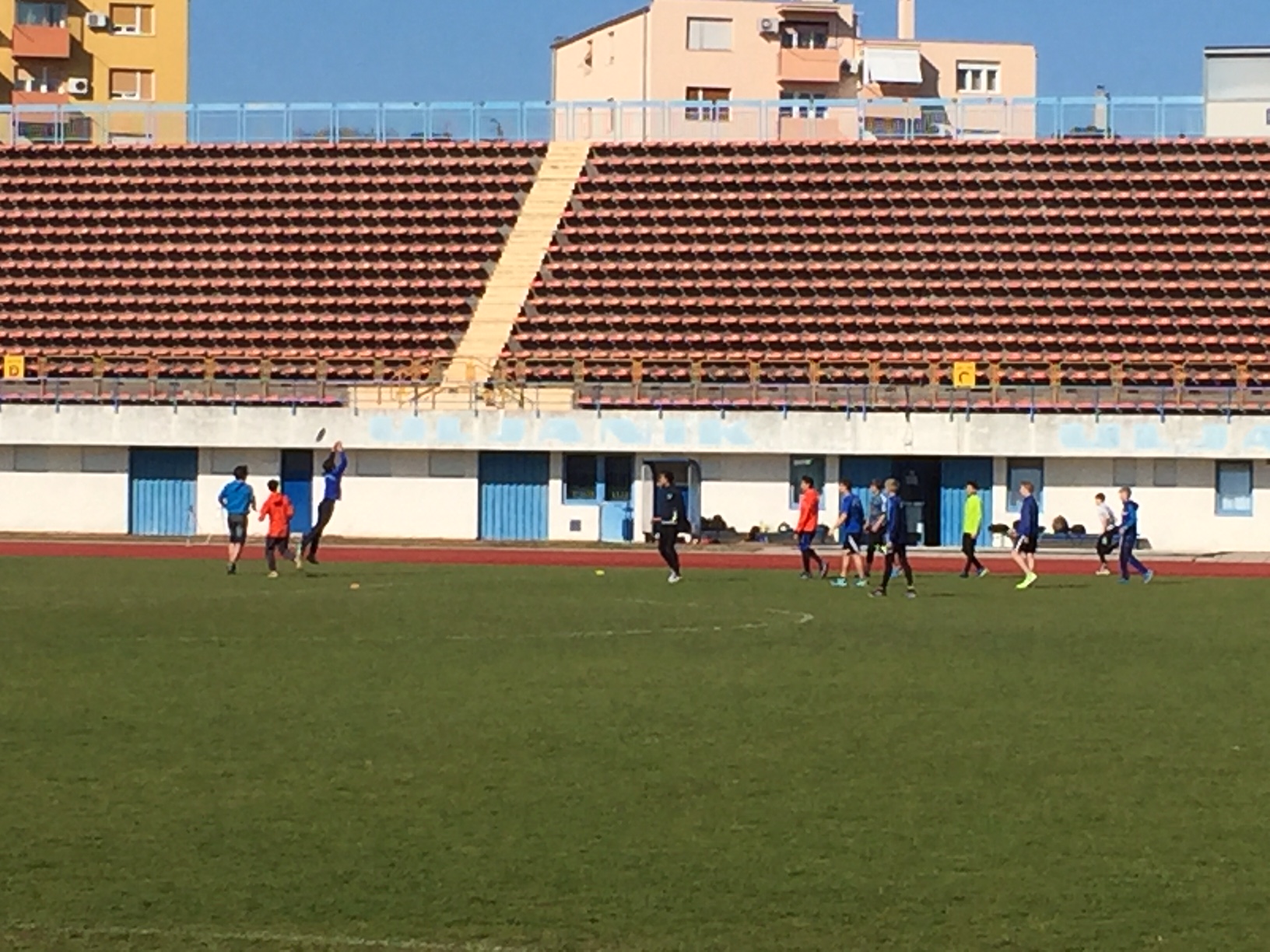 Danach ging‘s zum zweiten Training ins Stadion, wo diesmal auch ein Teil der kroatischen Nationalmannschaft zugegen war. Auch mit unserem Einlaufprogramm werden wir von Tag zu Tag kreativer. Wir absolvierten die Hürden- und Kugeleinheit ohne Rücksicht auf Verluste weiterer Opfer beim Mörderspiel. Und es werden noch weitere folgen (sagt die zweifache Mörderin Helena…)!