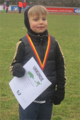 Bei der M09 konnte Patrick Davidowske seinen Vorjahreserfolg über die 1.400m lange Strecke in 5:49min souverän im größten Teilnehmerfeld der Veranstaltung wiederholen und dafür neben der Urkunde auch einen Glaspokal strahlend entgegennehmen. Etwas ärgern musste sich hingegen die einzige Kirchheimerin der W10 Kimberly Frieb-Preis, denn sie verpasste mit dem 4. Platz in 6:38min einen Podestplatz nur knapp.
