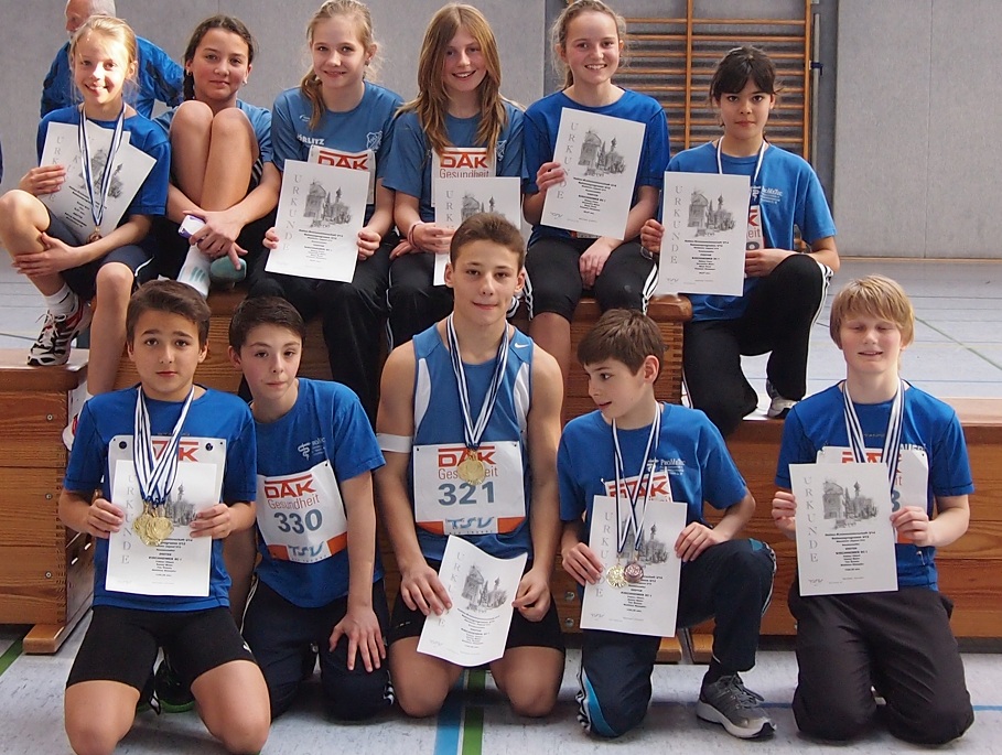 In der Altersklasse M12 war es einmal mehr Fabian Olbert, der zwar wegen Knieproblemen auf den Hochsprung verzichtete und beim 5er-Hopp mit einer Weite von 10,84 m „nur“ Bronze gewann, aber mit 4 x Gold in den anderen Disziplinen als „kleiner Matthias bezeichnet werden könnte. Seine Gold-Leistungen: Kugel 8,22 m, 35m-Hürden 6,31 sec., 35m 5,43 sec. und Sieg mit der Staffel.