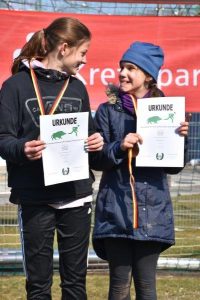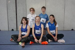 Von den 5 Mädels, die über die 2150m Laufstrecke an den Start gingen, kamen Sofie Pfeiffer, Mia Maiberger (beide w13) und Sophie Mayr (w12) in die Mannschaftswertung (3 Zeitschnellste). Sofie und Mia liefen zeitgleich in 9:09 Min ins Ziel ein, Sophie kam nur zwei Sekunden später in 9:11 Min an. Mit diesem fast gleichzeitigen Zieleinlauf sicherten sie sich den 3. Platz in der Teamwertung! Auch die Jungs konnten ein Team stellen, Jonas Hennerich, Jan Becker (beide m12) und Felix Strafner (m13) landeten auf Platz 5 in der Mannschaftswertung.