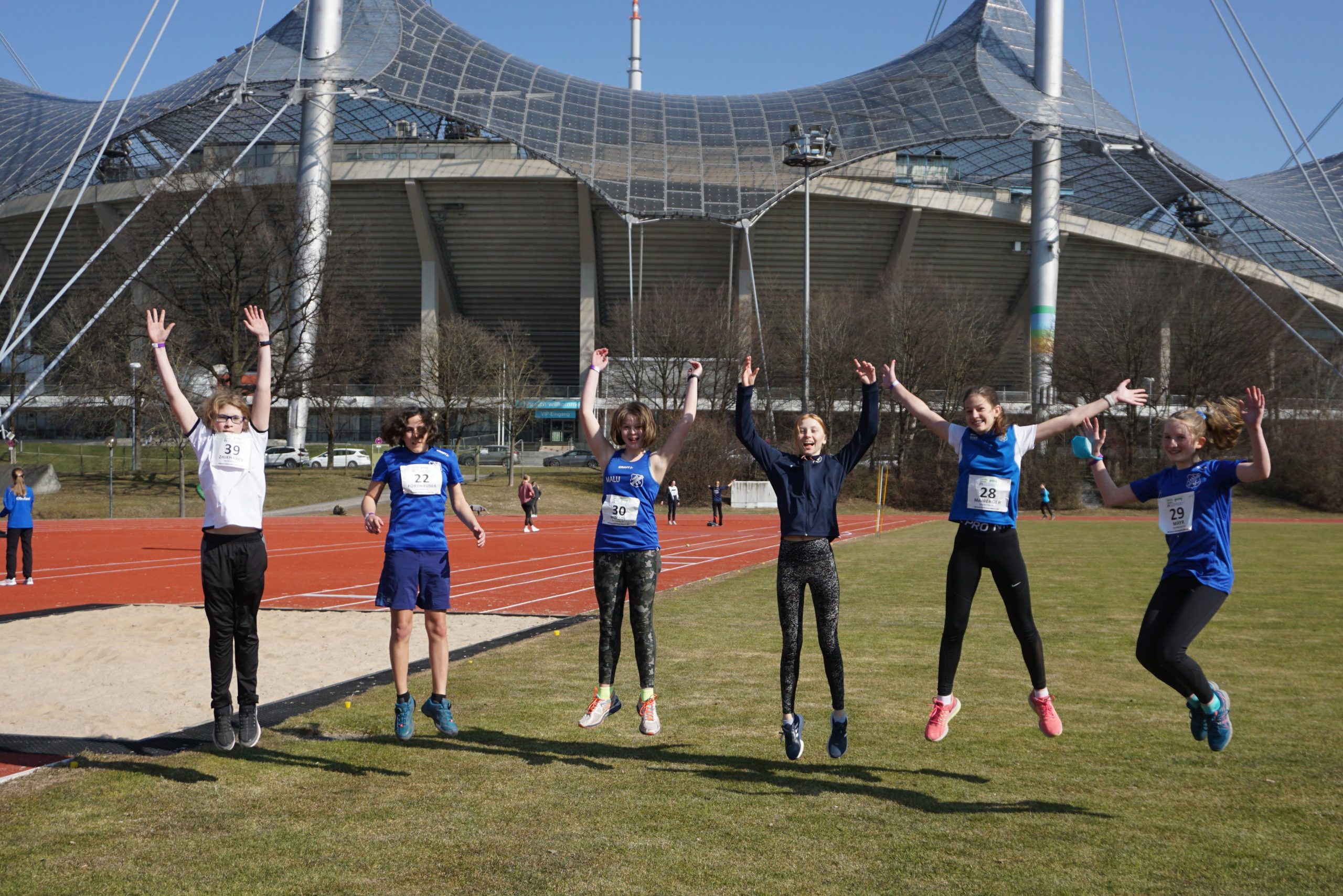 Die U14 war mit einem 8-köpfigen Team am Start und testete sich im großen Feld an neuen Disziplinen. Mia Maiberger erreichte in einem starken Hürdenfeld der w13 den 7. Platz in 11,25 sec, Elodie Holzleitner konnte ihre Bestleistung aus dem letzten Jahr um 3 Zehntel drücken und wurde in 12,02 sec Zehnte. Sie nahm fünf der sechs Hürden mit dem Nachziehbein-Knie mit, da ist bei einem sauberen Lauf also auch noch was drin! Mia und Malu Molloy konnten außerdem im Hochsprung ihre Leistungen der Vorwoche deutlich steigern und übersprangen 1,32m bzw. 1,26m. Der körperlich angeschlagene Victor Zhikharev (M13) ging wie in der Vorwoche nur im Kugelstoßen an den Start. Diesmal konnte er leider nicht an die Leistung der Vorwoche herankommen und musste diesen Wettkampf in der Kategorie „Erfahrung sammeln“ abspeichern. In einem Lauf ohne ebenbürtige Konkurrenz schrammte Sophie Mayr (W12) um 2 Hundertstel an der Finalqualifikation über 60m vorbei – in einem schnelleren Lauf wären die Hundertstel locker drin gewesen. Somit belegte sich in 9,29 sec den 9. Rang in einem riesen Starterfeld von 49 Teilnehmern. Gemeinsam mit Antonia Forthauser war es für sie der erste Wettkampf in der neuen Altersklasse U14. Zum Ende des langen Wettkampftags reisten dann noch unsere 800m-Läufer Sofie Pfeiffer und Lukas Ertl (W bzw. M13) an. Sie kamen zwar nicht ganz an ihre Leistungen aus dem letzten Sommer heran, liefen aber in einem jeweils beherzten Rennen im Bereich ihrer Bestleistung ins Ziel.