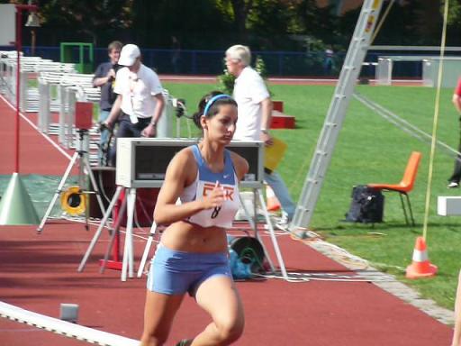 Am zweiten Tag des Mehrkampfes steigerte sich die Pulsfrequenz der anwesenden Betreuer beim Weitsprung deutlich. Hatten die Kirchheimerinnen bis zum 3. Versuch zwar solide Sprünge gezeigt, für eine gute Platzierung aber mussten beide Athletinnen dennoch stark an Weite zulegen. Marina steigerte sich schließlich auf 4,87m und Suni von 5,03m auf 5,36m. Man sollte sein Glück lieber nicht zu oft herrausfordern, denn beim letzten Sprung von Suni hätte nicht einmal eine Briefmarke mehr dazwischen gepasst: Uff! Mit einer persönlichen Bestleistung von 38,45m im Speerwurf konnte Suni endlich die „38er Marke“ knacken. Marina beförderte den Speer auf gute 29,34m. Als letzte Disziplin wäre da nun noch der abschließende 800m Lauf: An Dramatik, Nervosität und psychologischem „Fingerspitzengefühl“ mag dies sowohl für die Athletinnen als auch für den Trainer die „schwierigste Disziplin“ im ganzen 7-Kampf sein; dies zu erörtern würde aber seitenweise Berichte füllen! Kurzum: Marina ärgerte sich ein wenig über ihre Zeit von 2:28,66, denn „eigentlich hat mich das gar nicht angestrengt“, und Suni bewältigte die zwei Stadionrunden in 2:37,56 min. Am Ende konnte Marina Ehrenreich 3881 Pkt. und einen 10. Platz für sich verbuchen und Sunita Kumar den Meistertitel gewinnen.