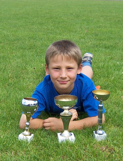 Matthias Klampfer wurde zwar nicht mit einem Kreismeistertitel belohnt, dafür aber mit drei Pokalen, die er als Vize-Kreismeister in den Disziplinen 50 m, 50 m-Papphürden und im Weitsprung gewann. Seine Barfuß-Laufstärke war bei der Konkurrenz und den Zuschauern schnell Gesprächsthema, denn Matthias´ Sprints sind einfach schön anzuschauen. Die 50 m legte er in 8,41 sec. zurück, über die 50m-Hürden war er in 11,16 sec. schnell unterwegs und mit einem Weitsprung über 3,36 m machte er ein letztes mal klar, dass zumindest der 2. Stockerlplatz ihm gehört.