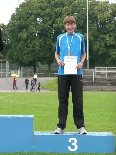 Christian Zimmermann (M14) bewies nun „endlich“ einmal, dass er den 1kg schweren Diskus nicht nur im Training weit werfen kann, sondern auch im Wettkampf. Mit einer Weite von 35,96m wurde Christian schließlich Oberbayerischer Meister im Diskswurf der Schüler A M14. Mit einer Zeit von 13,33 sec über die 80m Hürden konnte er sich zudem noch die Bronzemedaille in seiner Altersklasse sichern.