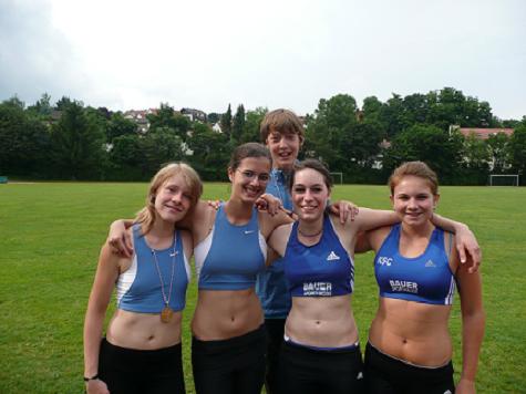 Bei der w. Jgd. B belegte Stephanie Kölle (Jg. 92) mit 8,96m im Kugelstoßen den siebten Platz und warf den 600g Speer mit Bestleistung auf 28,34m. Nathalie Vogt (Jg. 92) warf in der gleichen Altersklasse den Speer ebenso mit Bestleistung auf 27,21m und kam über 200m in einer Zeit von 29,66 sec ins Ziel.